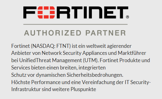 Schutz für Ihr Netzwerk High-End Perimeterschutz zu attraktiven Preisen - das ist Fortinet. Als Bronze Partner beraten wir Sie kompetent über die Produktlinie von Fortinet. • Firewalls • managed Wireless Network • SSL VPN • Standortvernetzung • Webfilter Cryptoviren und ihre Schadensfälle machen deutlich, dass Sicherheit nicht zu unterschätzen ist. Dabei ist die Qualität genauso wichtig wie einfache und damit schnelle Verwaltung und ein umfassendes Produktangebot. Fortinet, Sicherheit vom Client bis zur Cloud. Fortinet Brochure PDF Wireless Matrix PDF Produkt Matrix PDF